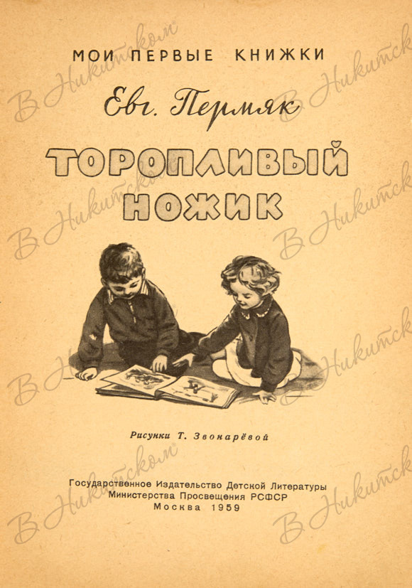 [Серия «Мои первые книжки»]. Пермяк, Е. Торопливый ножик / рис. Т. Звонарёвой. М.: ДЕТГИЗ, 1959.