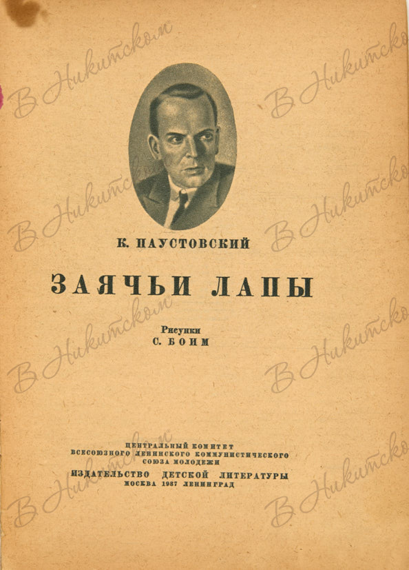 [Серия «Книга за книгой»]. Паустовский, К. Заячьи лапы / рис. Б. Боим. М.; Л.: ДЕТИЗДАТ, 1937.