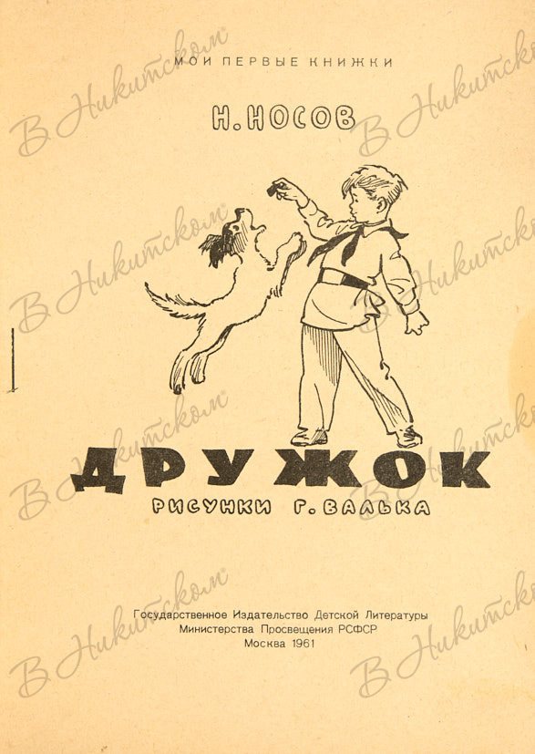 [Серия «Мои первые книжки»]. Носов, Н. Дружок / рис. Г. Валька. М.: ДЕТГИЗ, 1961.