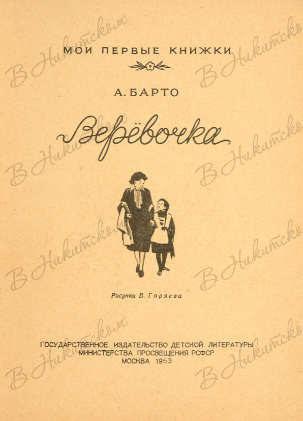 [Серия «Мои первые книжки»]. Барто, А. Верёвочка / рис. В. Горяева. М.: ДЕТГИЗ, 1963.