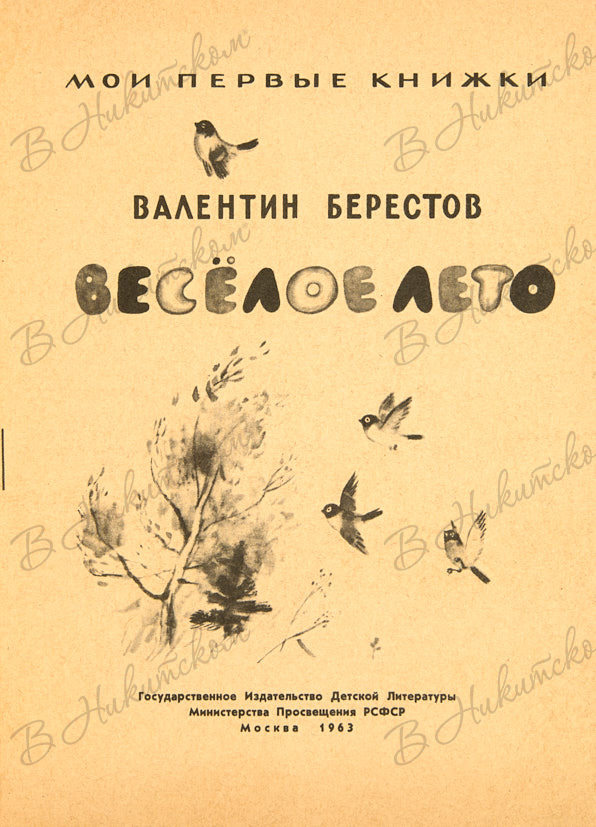 [Серия «Мои первые книжки»]. Берестов, В. Весёлое лето / рис. Н. Устинова. М.: ДЕТГИЗ, 1963.