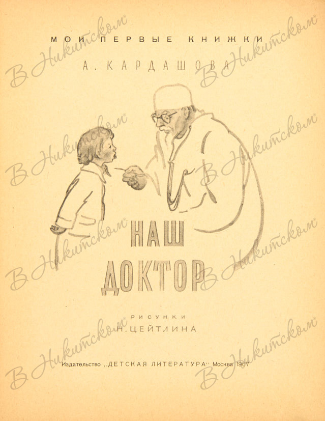 [Серия «Мои первые книжки»]. Кардашова, А. Наш доктор / рис. Н. Цейтлина. М.: «Детская литература», 1967.