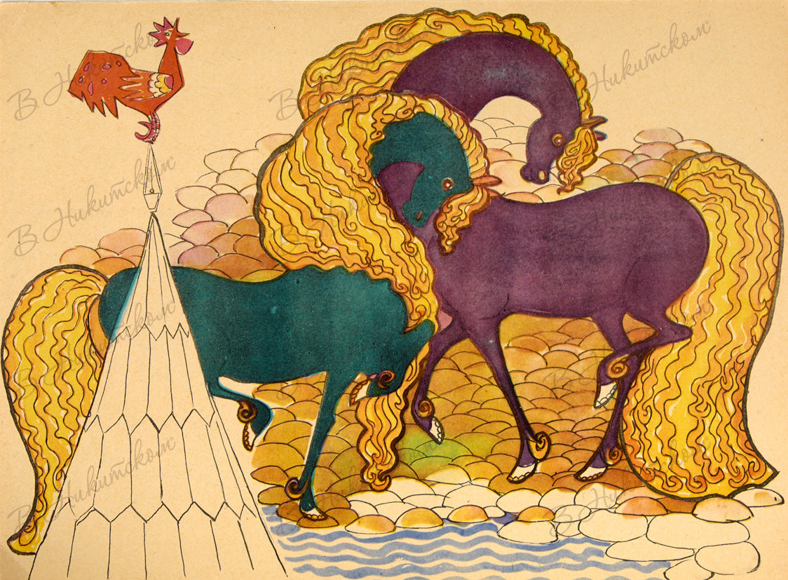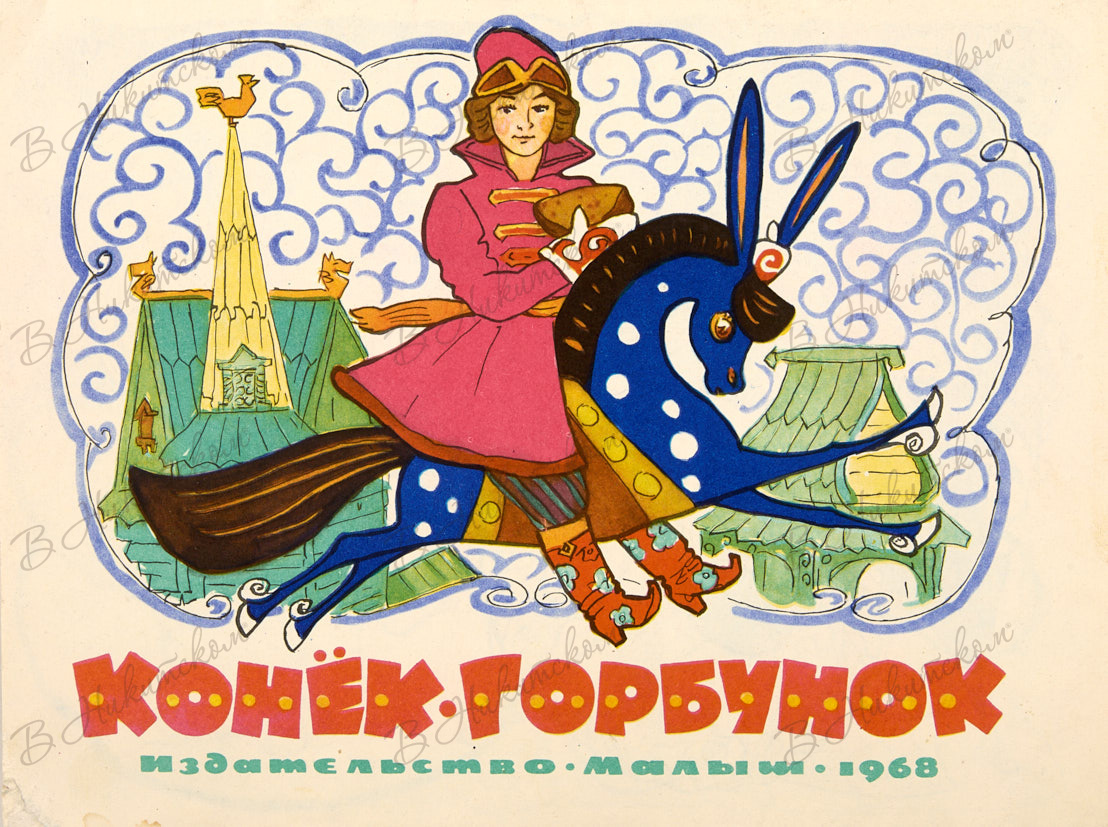Конёк-горбунок. Альбом для раскрашивания / худ. М. Алексеев, Н. Строганова; худ. ред. Г. Коптелова. М.: Издательство «Малыш», 1968.