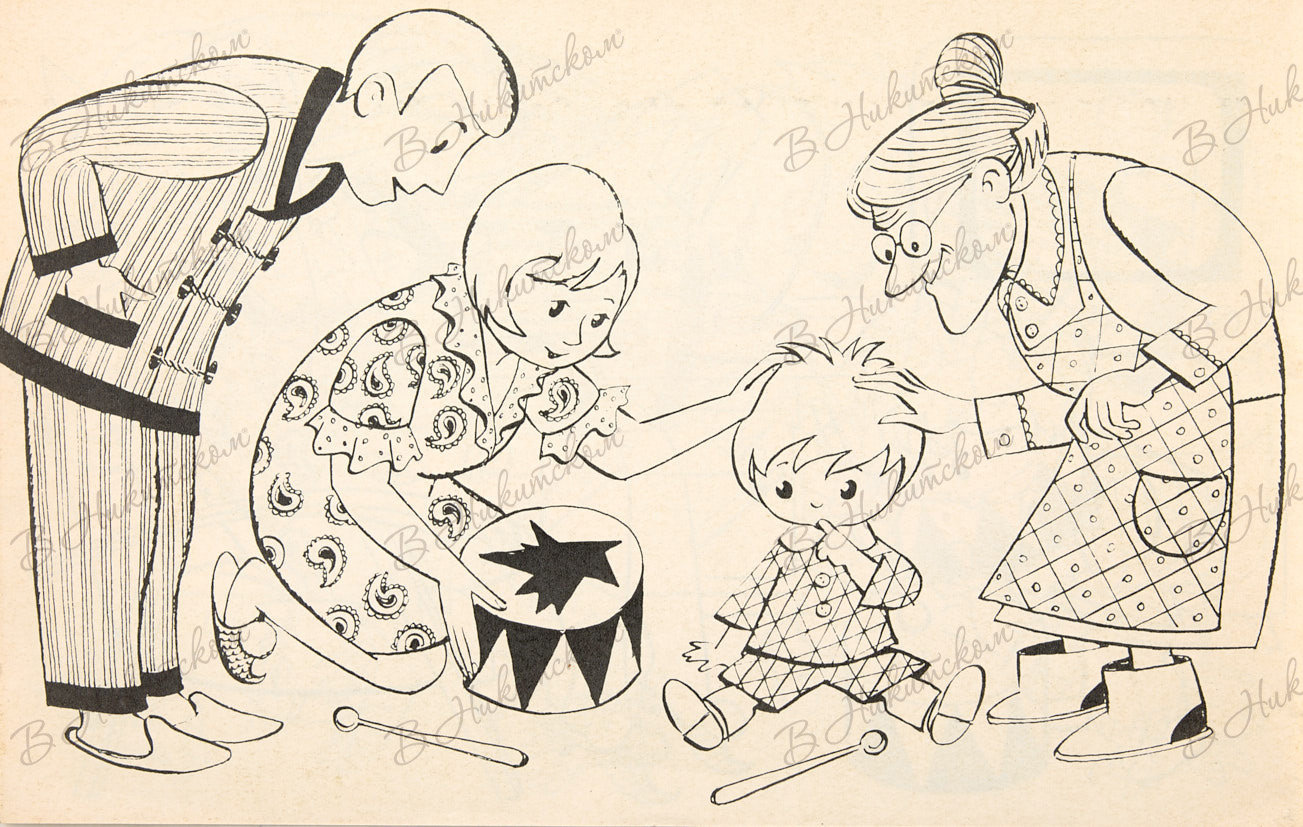 Вовин барабан Раскрась сам / стихи А. Пришельца; муз. В. Герчикрис. Г. и В. Караваевых. М.: Издательство «Малыш», 1969.