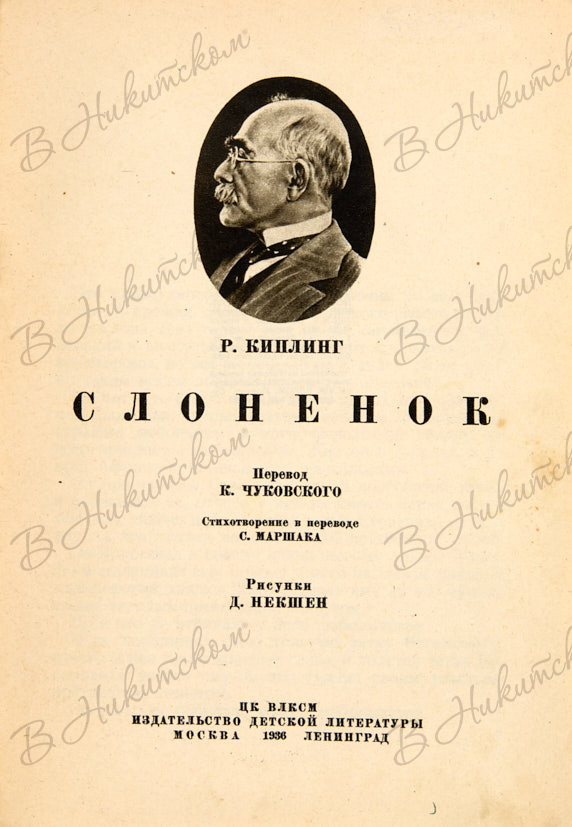 [Серия «Книга за книгой»]. Киплинг, Р. Слонёнок. М; Л.: ДЕТИЗДАТ, 1937.