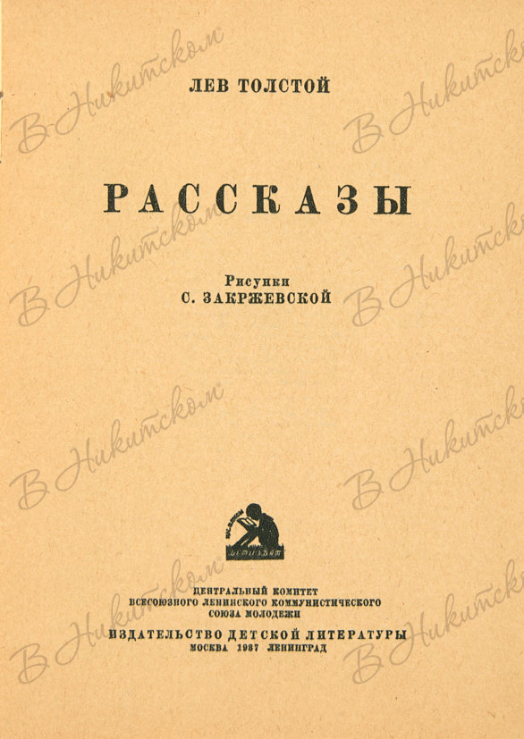 [Серия «Маленькая библиотека»]. Толстой, Л. Рассказы / рис. С, Закржевской. М.; Л.: ДЕТГИЗ, 1937.
