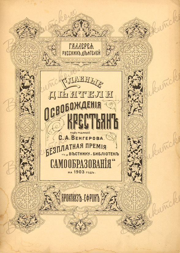 Главные деятели освобождения крестьян / под ред. С.А. Венгерова. СПб.: Брокгауз-Ефрон, 1903.
