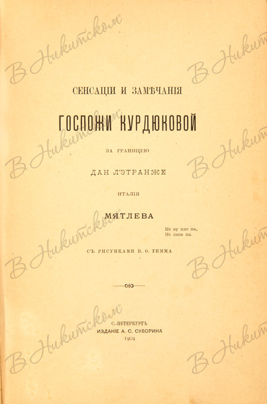 Мятлев, И. Сенсации и замечания госпожи Курдюковой за границею, дан л’этранже / с рис. В.Ф. Тимма. [В 2 т.] Т. 2. СПб.: Изд. А.С. Суворина, 1904.