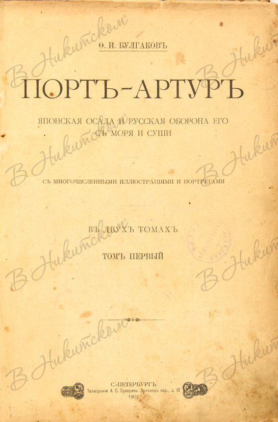 Булгаков, Ф.И. Порт-Артур. Японская осада и русская оборона его с моря и суши. В 2 т. Т. 1-2. СПб.: Тип. А.С. Суворина, 1905-1906.