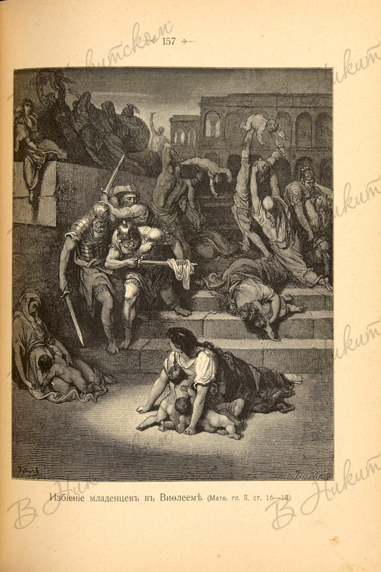 Роскошное издание с знаменитыми иллюстрациями Густава Доре. Ему предшествовало трехтомное вольфовское издание «Библии». Представленное издание давало возможность иметь все иллюстрации из Библии, оформленной Доре, всем, кто не успел приобрести разошедшийся тираж ее издания.