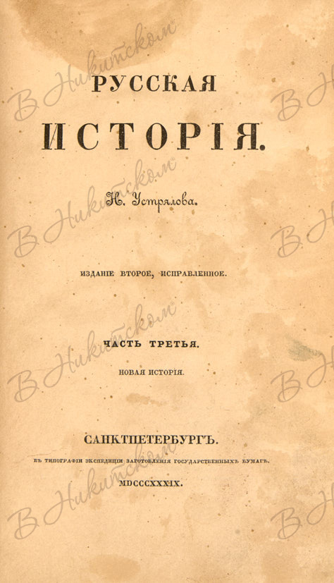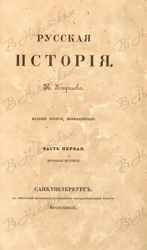 Устрялов, Н.Г. Русская история. 2-е изд. В 5 ч. Ч. 1-5. СПб.: Тип. Экспедиции заготовления государственных бумаг, 1839-1841.