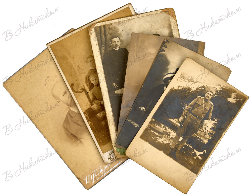 Лот из 3 портретных кабинетных фотографий и 3 портретных открыток. Фот. И.Ф. Курбатов (Тула), Вакуленко в Пензе и Туле и др. [1910-е].