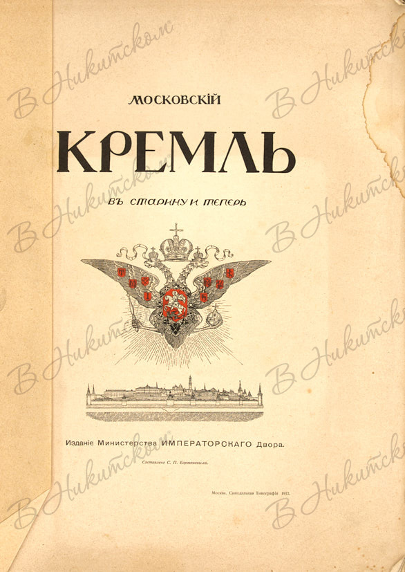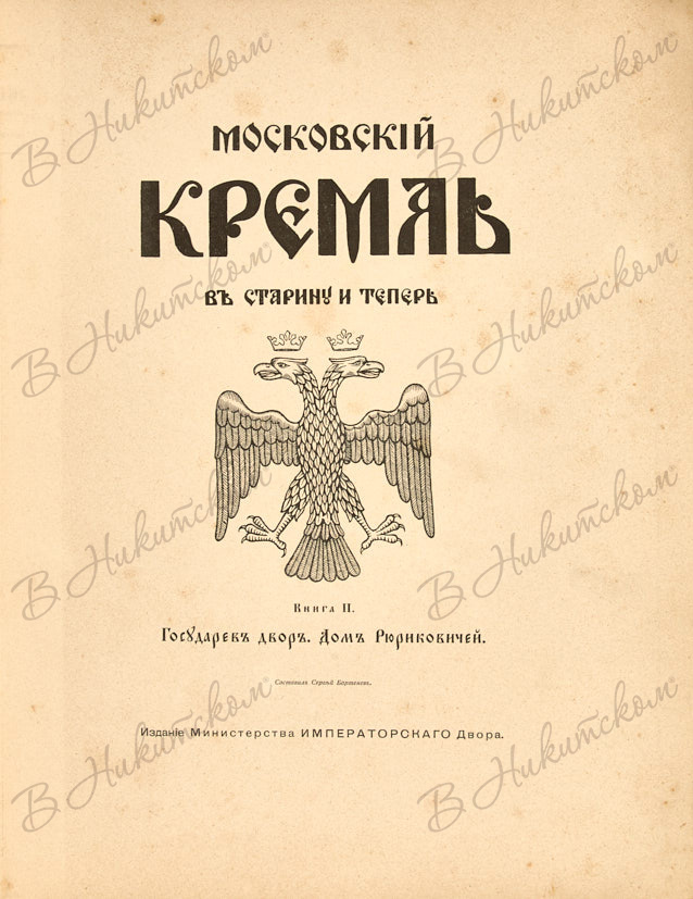 Бартенев, С.П. Московский Кремль в старину и теперь. В 2 т. Т. 1-2. М.: Изд. Министерства Императорского Двора; Синодальная тип., 1912-1916.