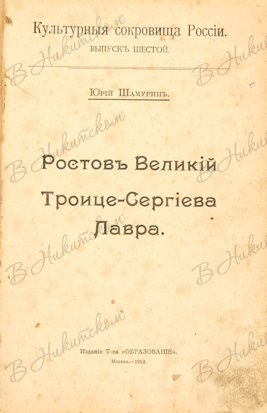 Шамурин, Ю.И. Ростов Великий. Троице-Сергиева лавра. М.: Издание Т-ва «Образование», 1913.