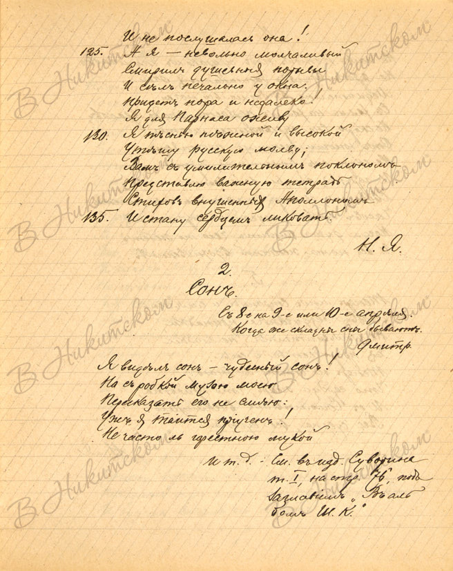 [21] с. текста. 22 х 17,5 см. В ученической тетради. Стихотворения переписаны из издания «История одной жизни. А.А. Воейкова - «Светлана» Н.В. Соловьева (Пг.., 1915-1916).