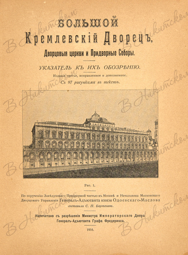 Большой Кремлёвский дворец. Дворцовые церкви и Придворные Соборы. М.: Синодальная Типография, 1916.