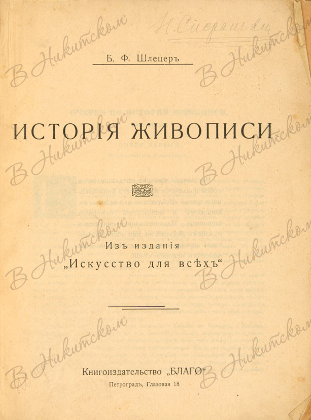 Шлецер, Б.Ф. История живописи / Из издания «Искусство для всех». Пг.: Книгоиздательство «Благо», [1917].
