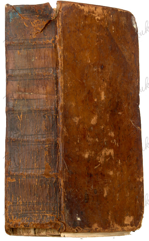 19,2 х 12,5 см. В цельнокожаном переплете эпохи. Потертости переплета, надрыв корешка, переплет неплотно прилегает к блоку, повреждения форзацев, следы залития блока (преимущественно ч. 2), редкие надрывы страниц, разломы блока, в обеих частях подрезано нижнее поле. В ч. 1 утрата титула. В ч. 2 титул с владельческими пометами орешковыми чернилами, несколько последних листов ветхие.