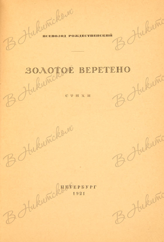 [Вторая книга стихов]. Рождественский, В. Золотое веретено. Стихи. Пб.: Петрополис, 1921.