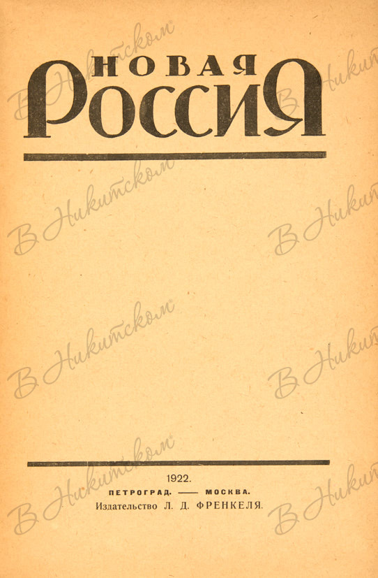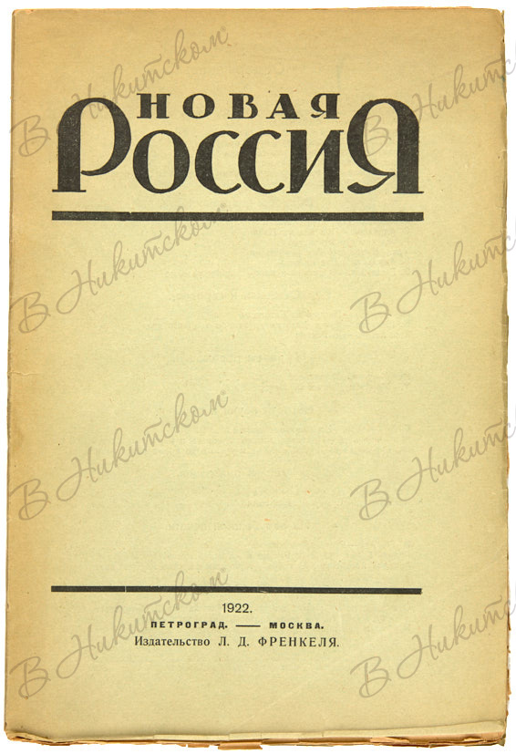 Новая Россия. Пг; М.: Издательство Л.Д. Френкеля, 1922.