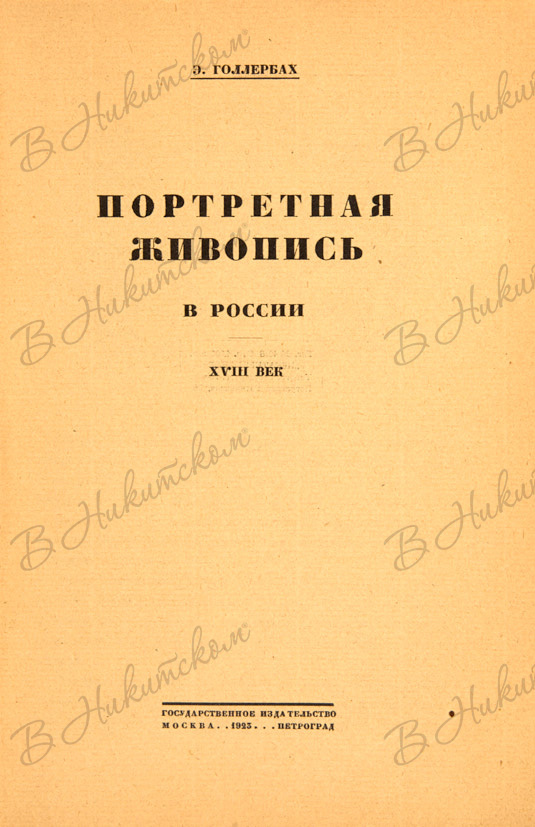 Голлербах, Э.Ф. Портретная живопись в России. XVIII век. М.; Пг.: Государственное издательство, 1923.
