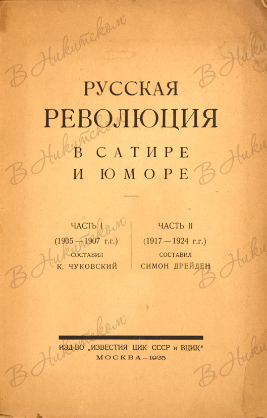 Чуковский, К. [сост. 1 часть] Дрейден, С. [сост. 2 часть] Русская революция в сатире и юморе. В 2 ч. Ч. 1-2. М.: Изд-во «Известия ЦИК СССР и ВЦИК», 1925.
