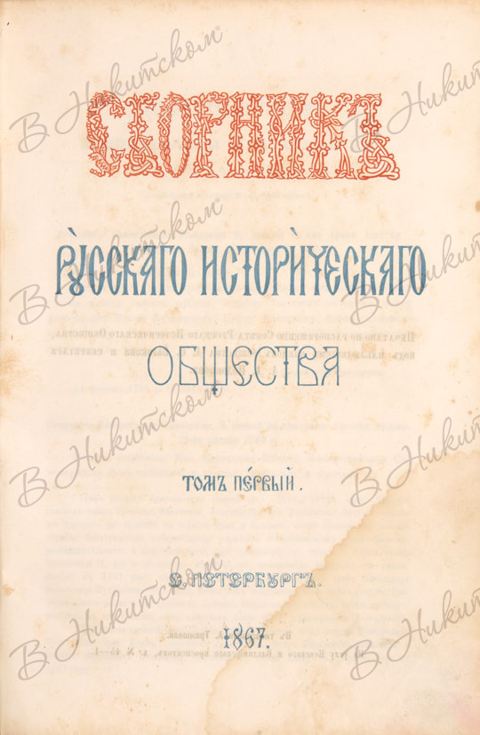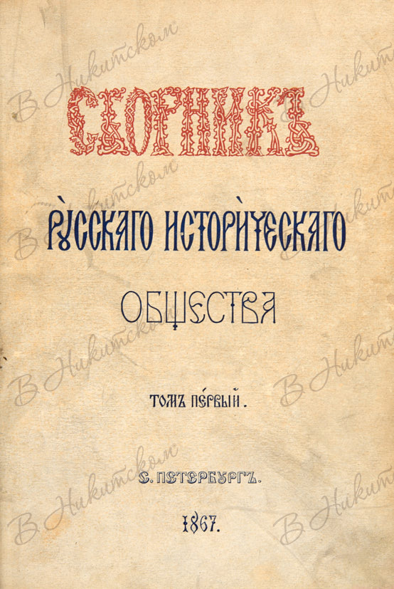 Сборник Императорского русского исторического общества. Т. 1. СПб.: Тип. А. Траншеля, 1867.