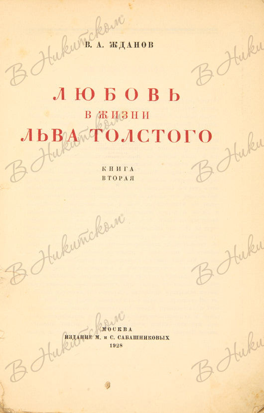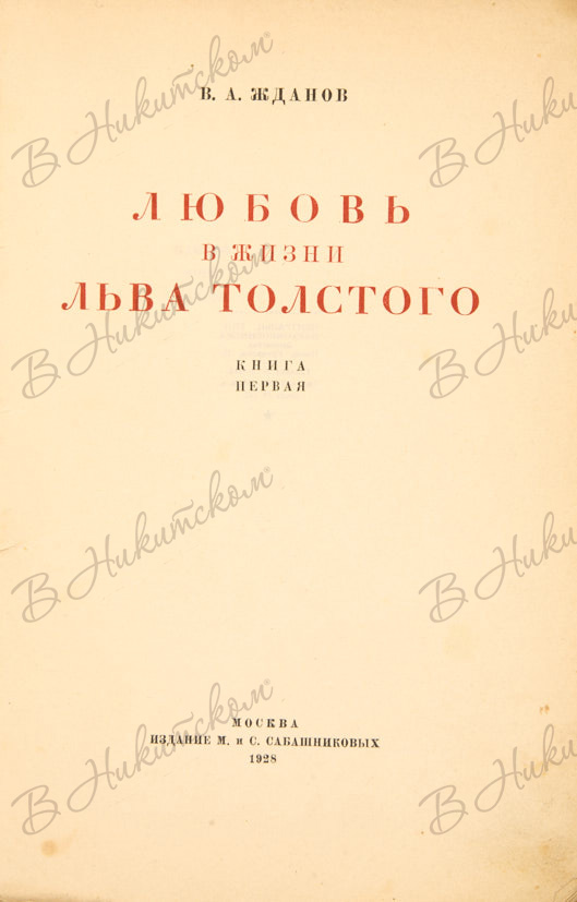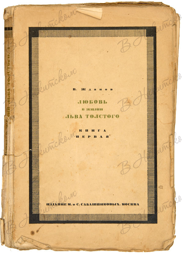 [Первое издание]. Жданов, В. Любовь в жизни Льва Толстого. М.: Издание М. и С. Сабашниковых, 1928.