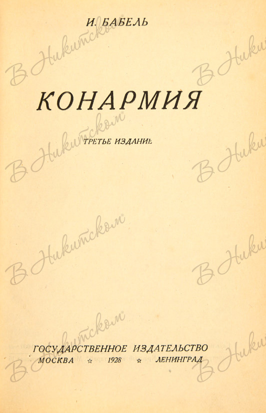 Бабель, И. Конармия. 3-е издание. М.; Л.: ГИЗ, 1928.