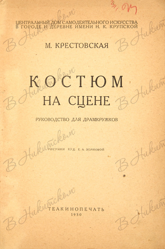 Крестовская, М. Костюм на сцене. Руководство для драмкружков / рис. Е.А. Зерновой. Л.: ТЕАКИНОПЕЧАТЬ, 1930.