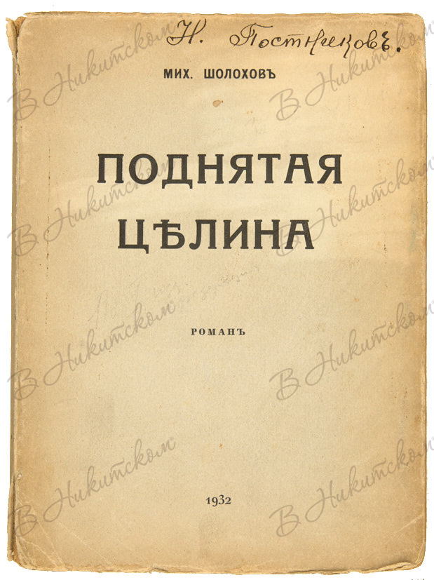 Шолохов, М. Поднятая целина. [В 2 т.]. Т. 1. Париж, 1932.
