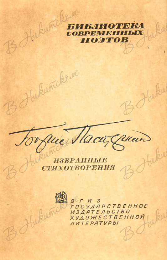 [Серия «Библиотека современных поэтов»]. Борис Пастернак. Избранные стихотворения. М.: ГИХЛ, 1933.