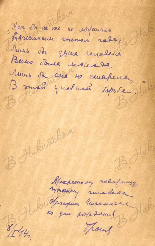 251, [5] с. 19,3 х 13,6 см. В цельнотканевом издательском иллюстрированном переплете. На обороте форзаца 2а записи фиолетовыми чернилами. Надрыв с. 161-162 по среднему полю. Потертости, загрязнения переплета. Блок преимущественно чистый.