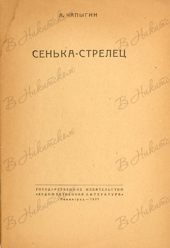 Чапыгин, А. Сенька стрелец. Л.: ГОСЛИТИЗДАТ, 1937.