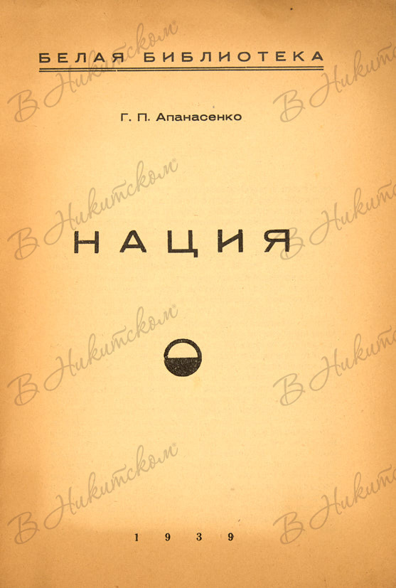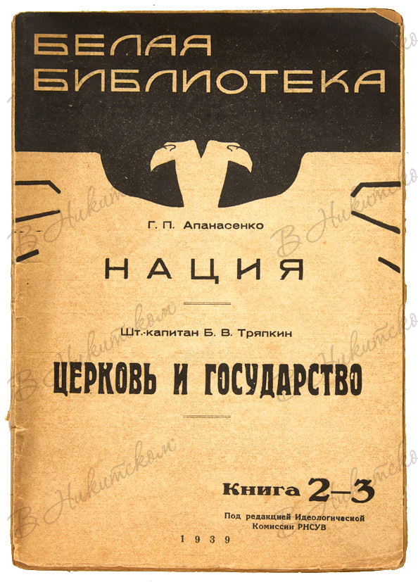 [Серия «Белая библиотека»]. Кн. 2-3. Апанасенко, Г.П. Нация. Шт.-капитан Тряпкин, Б.В. София: Издательство «Голос России», 1939.