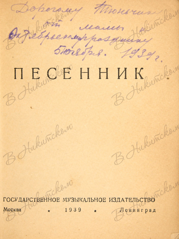 Песенник. М.; Л.: Государственное Музыкальное Издательство, 1939.