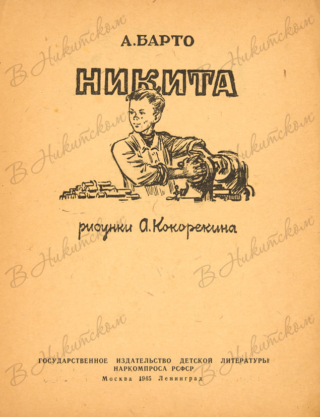 Барто, А. Никита / рис. А. Кокорекина. М.; Л.: ДЕТГИЗ, 1945.