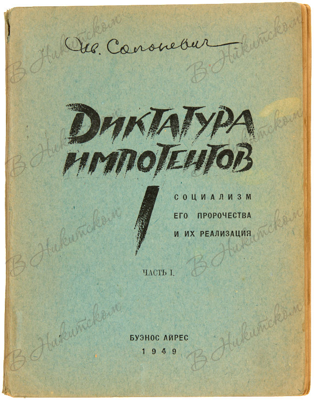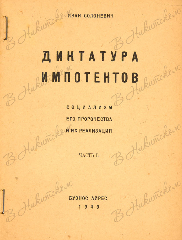 Солоневич, Н. Диктатура импотентов. Социализм. Его пророчества и их реализация. Ч.1. Буэнос Айрес, 1949.