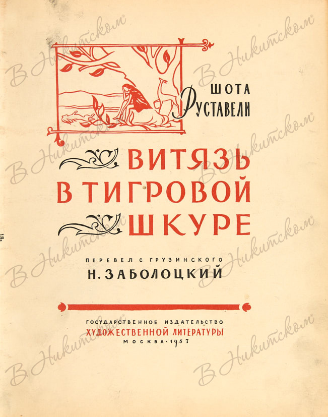 Руставели, Ш. Витязь в тигровой шкуре. Поэма. Москва : Гослитиздат, 1957.
