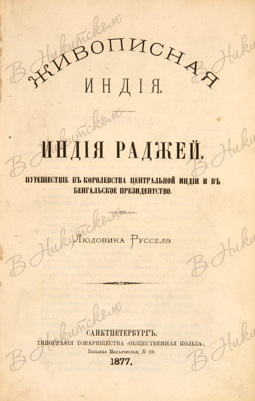 Русселэ, Л. Живописная Индия. Индия раджей. Путешествие в королевство Центральной Индии и в Бенгальское президентство. СПб.: Тип. Т-ва «Общественная польза», 1877.