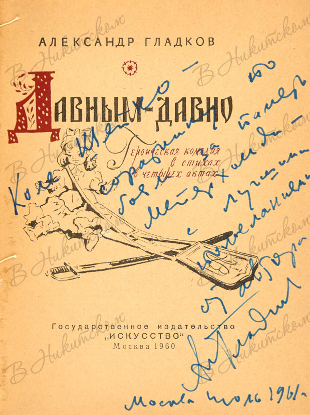 Гладков, А. [Автограф]. Давным-давно. Героическая комедия в стихах в четырёх действиях. М.: «Искусство», 1960.