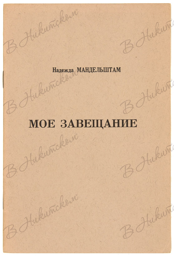 Мандельштам, Н. Моё завещание. [Нью-Йорк: Издательство имени Чехова, 1970].