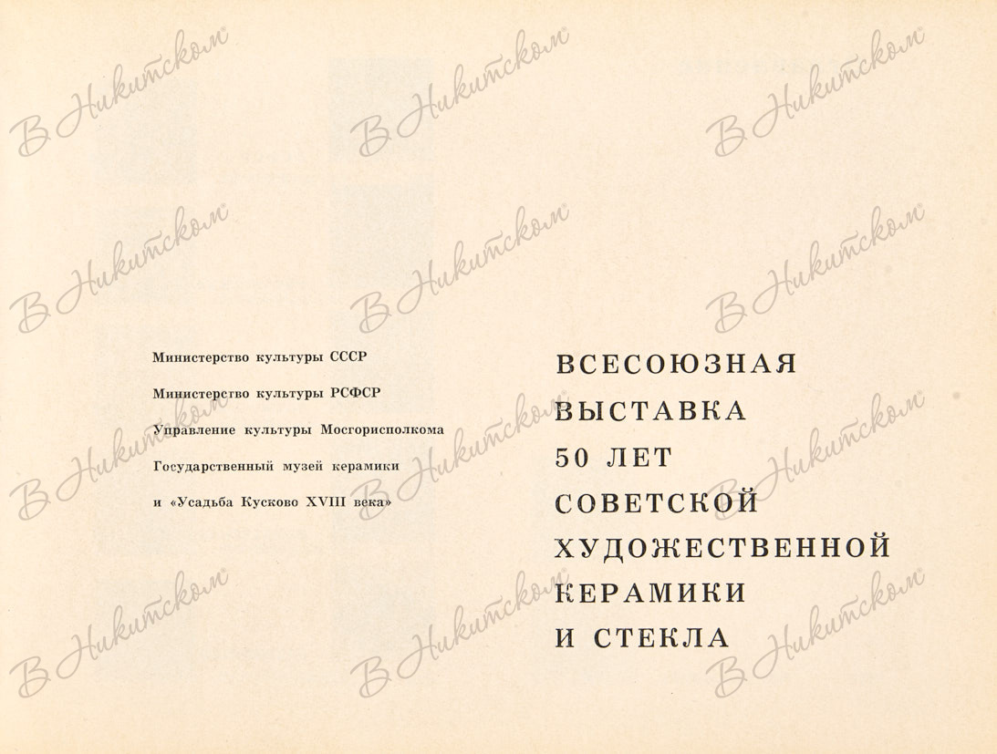 Всесоюзная выставка "50 лет советской художественной керамики и стекла". Государственный музей керамики усадьбы "Кусково". М.: Советский художник, 1970.