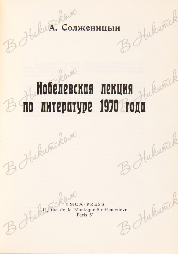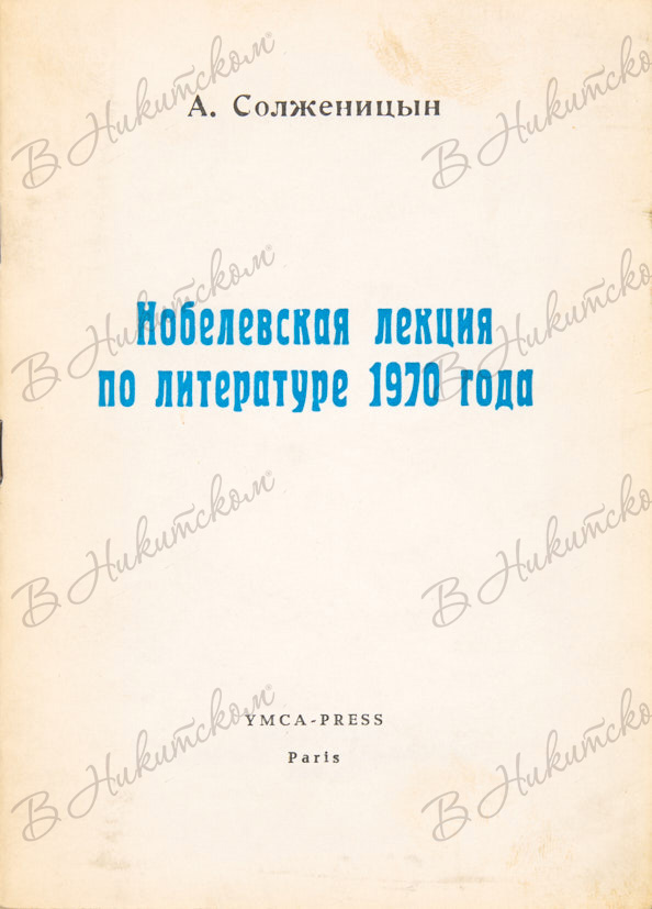 Солженицын, А. Нобелевская лекция по литературе 1970 года. Париж: YMCA-PRESS, 1972.