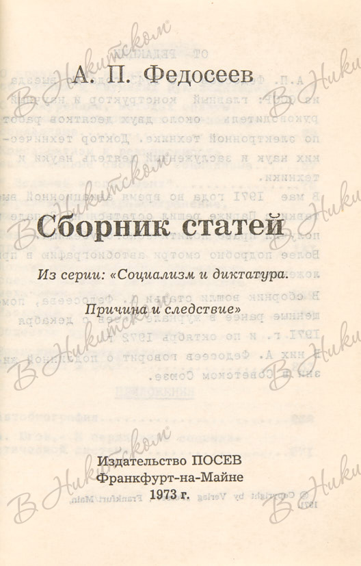 Федосеев, А.П. Сборник статей. Франкфурт-на-Майне: «Посев», 1973.