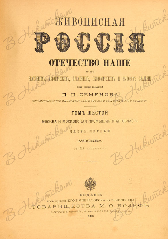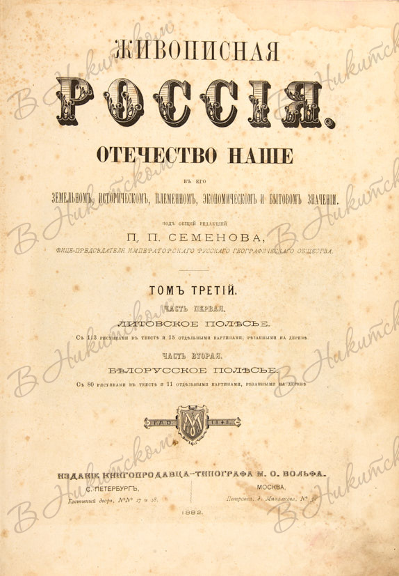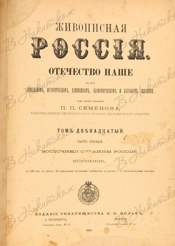 [Комплект]. Живописная Россия. Отечество наше в его земельном, историческом, племенном, экономическом и бытовом значении / под общ. ред. П.П. Семенова. В 12 т., в 19 кн. Т. 1-12. СПб.; М.: Издание М.О. Вольфа, 1881-1901.