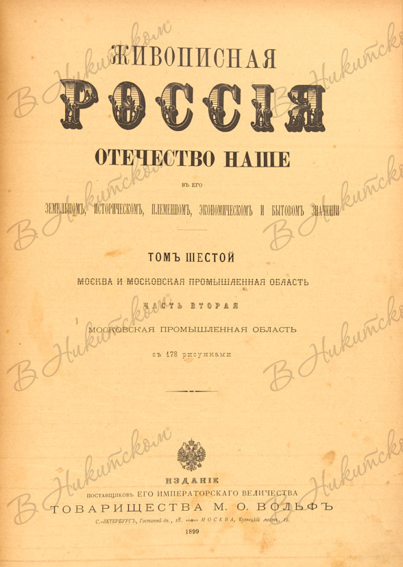 Полное издание «Живописной России», законченное уже после смерти Вольфа его преемниками в 1901 году, составляло 12 томов, 19 книг, содержало 6984 страницы текста и 3815 иллюстраций, из них 400 – большие картины во всю страницу, гравюры на дереве и цинке, фотоцинкографии с натуры и прочие.