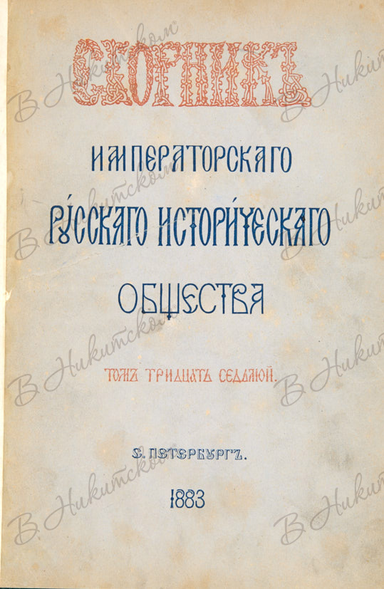 Сборник Императорского русского исторического общества. Т. 37. СПб.: Тип. Имп. Акад. наук, 1883.