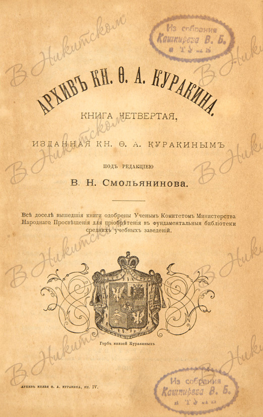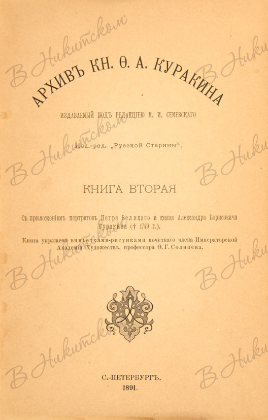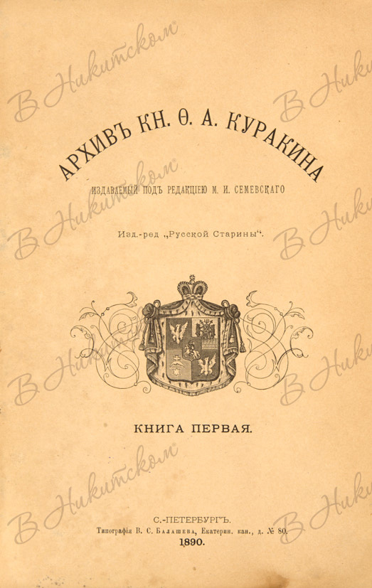 Архив князя Ф.А. Куракина / издаваемый под редакцией М.И. Семевского. [В 10 кн.] Кн. 1-7, 9. СПб.: Тип. В.С. Балашева, 1890-1902.