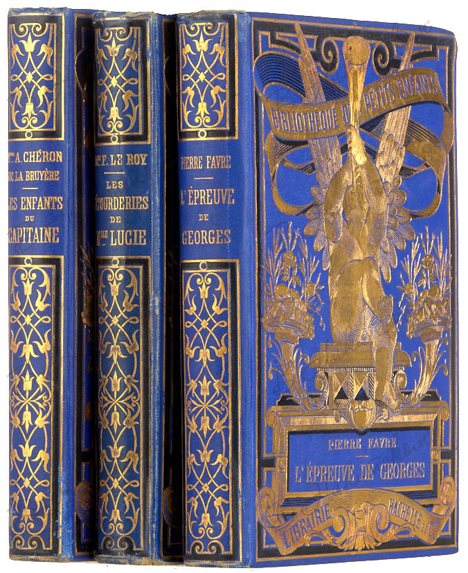 3. Брюйер, Ш. Дети капитана. [De La Bruyere, C. Les enfants du Capitaine. На французском языке]. Париж: Librairie Hachette et Cie, 1891. [8], 252, [4] с. 18,5 х 13,5 см. В трех издательских переплетах. Тройные золотые обрезы. Незначительные потертости переплетов, «лисьи» пятна, рисунки простым карандашом на форзаце 2б (2).